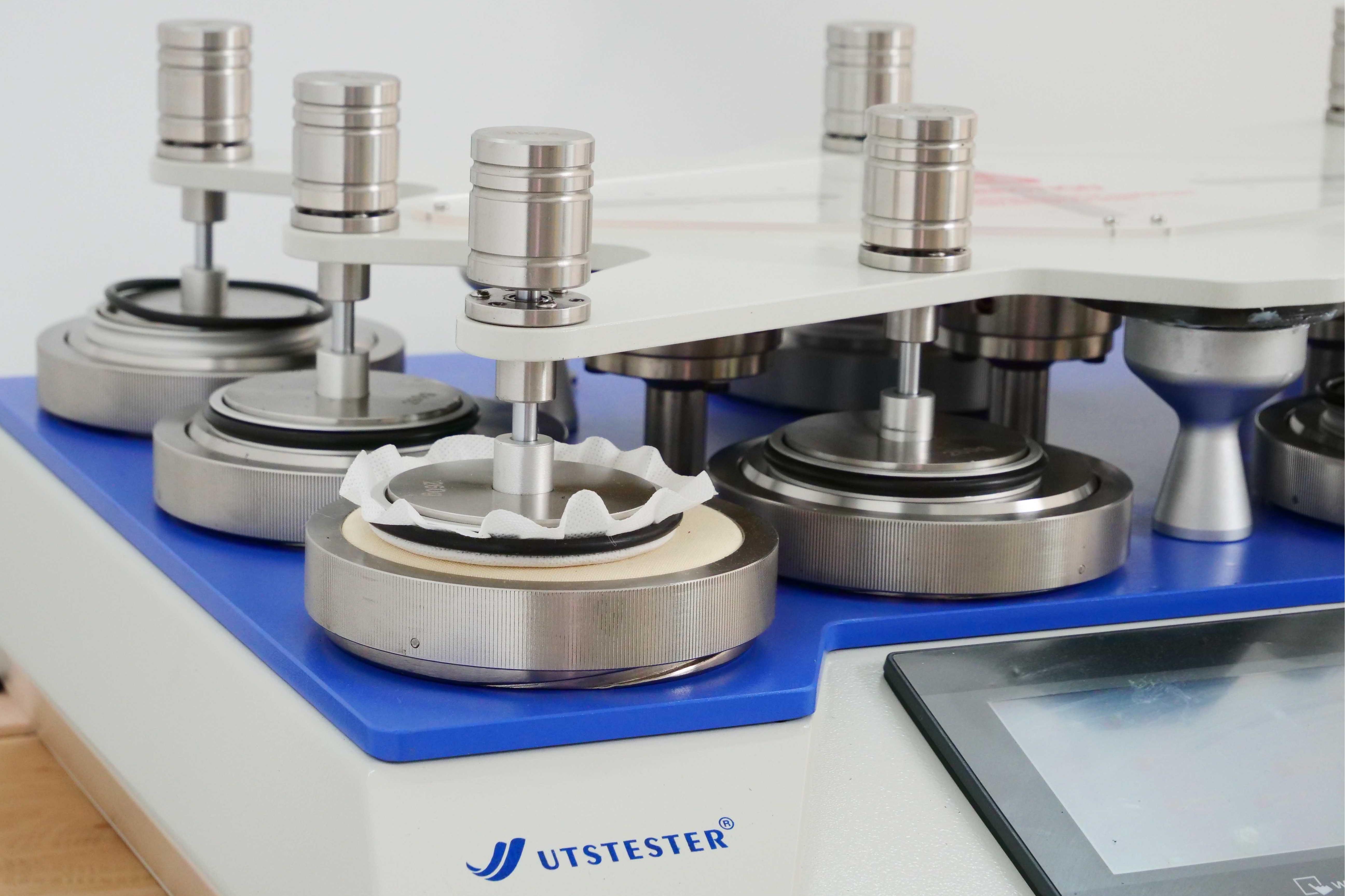 Martindale abrasion testing machine can test the abrasion resistance and pilling performance of various plants. Under a certain pressure, the specimen and the specified abrasive material are continuously rubbed in different directions, and the degree of abrasion and pilling is evaluated in comparison with the standard parameters. Touch screen control with full-featured programmer with pre-programmed batch and total counts, individually set counts for each test head; 4 speeds can be selected including the standard speed.